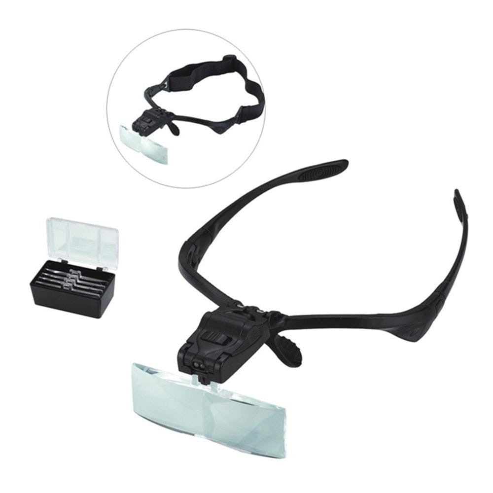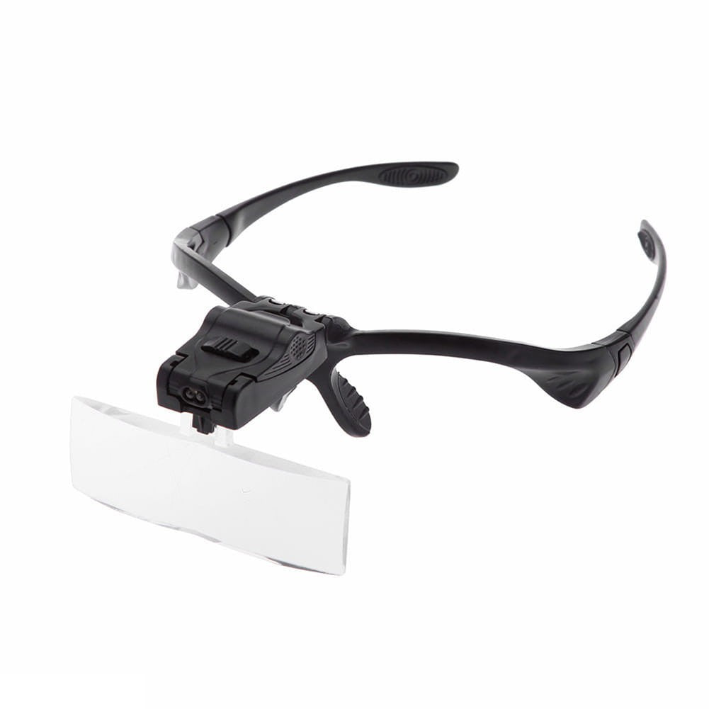 Lekkie okulary z podświetleniem oglądanego obiektu: 2 x LED, z możliwością łatwej wymiany pięciu prostokątnych soczewek o powiększeniu: 1x, 1,5x, 2x, 2,5x lub 3,5x. Regulowana w płaszczyźnie pionowej (180 stopni) głowica z podświetleniem i podstawą soczewki oraz dodatkowo ruchoma sama soczewka - wychylenie +/- 45 stopni. W komplecie pasek na głowę dopinany w miejsce bocznych "cyngli" oraz pudełko do przechowywania soczewek.